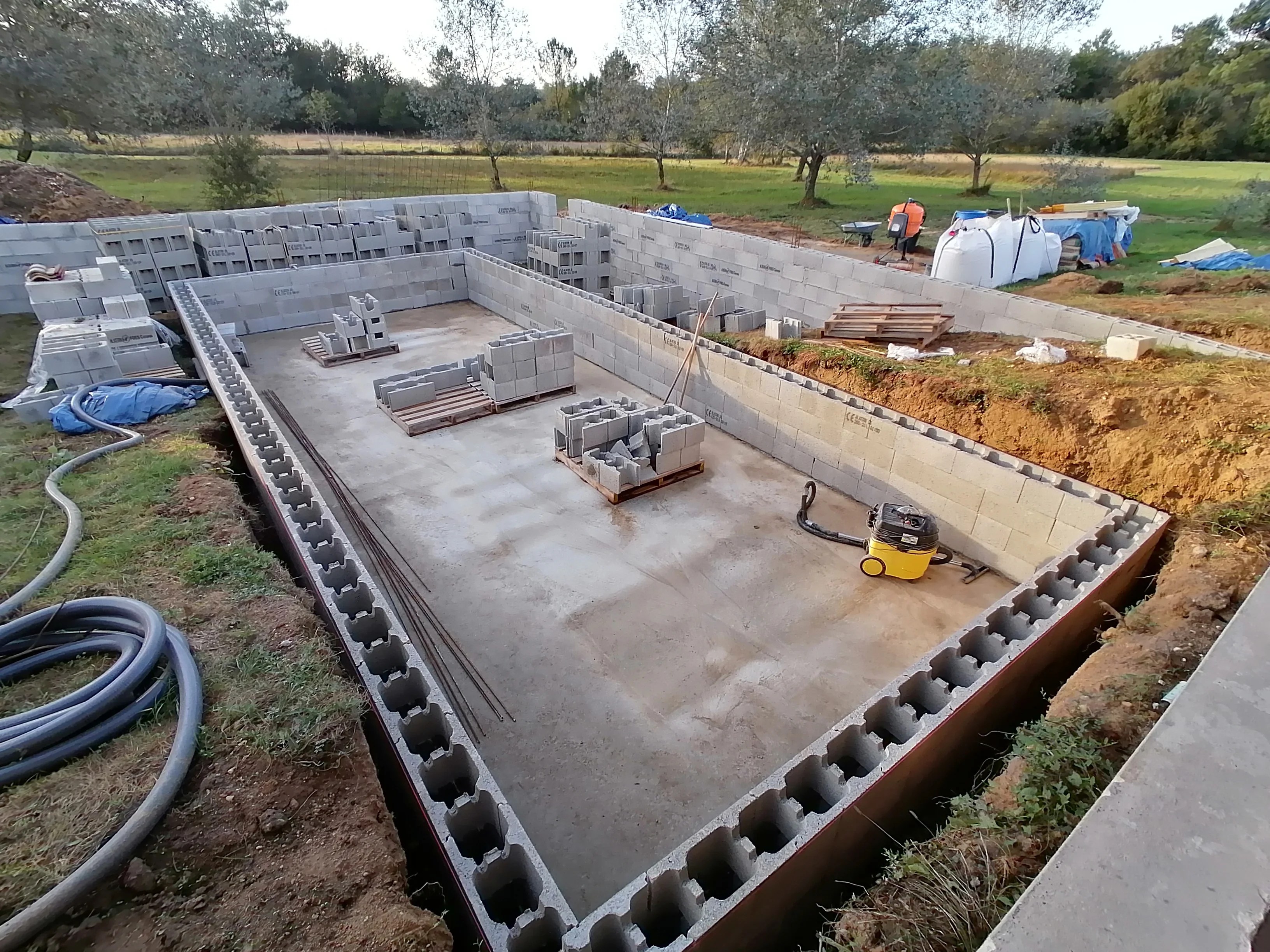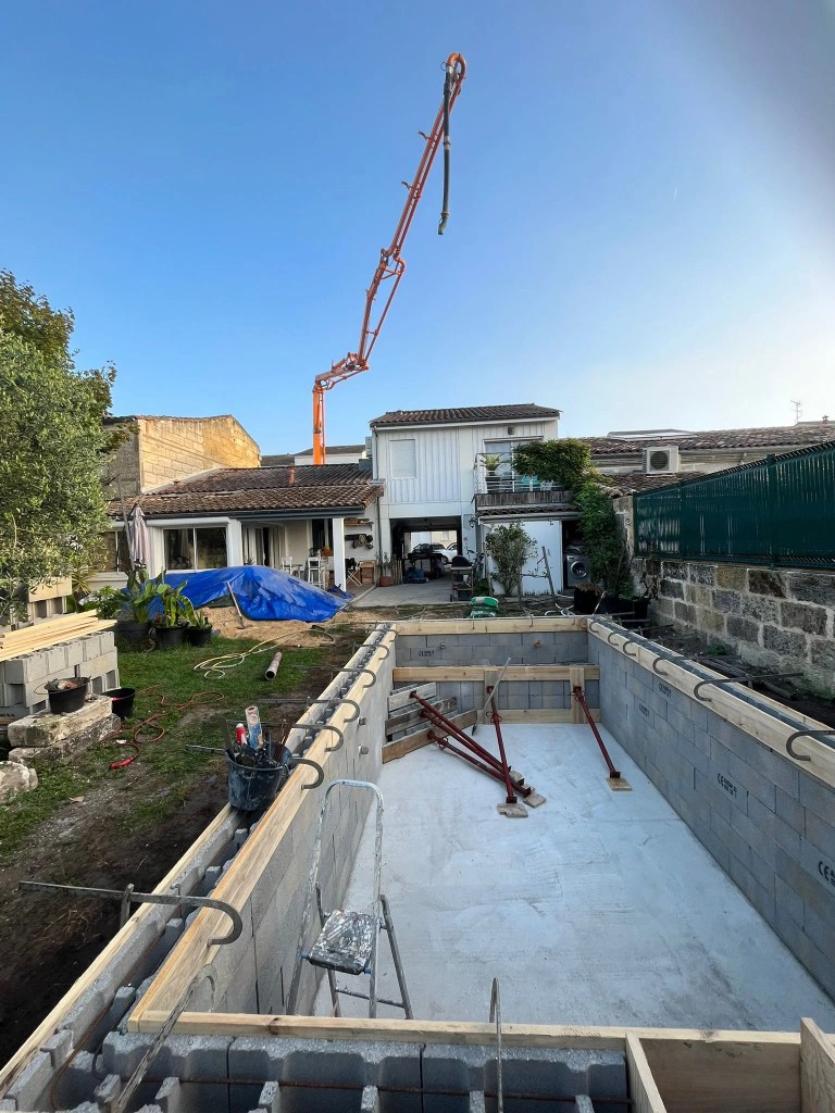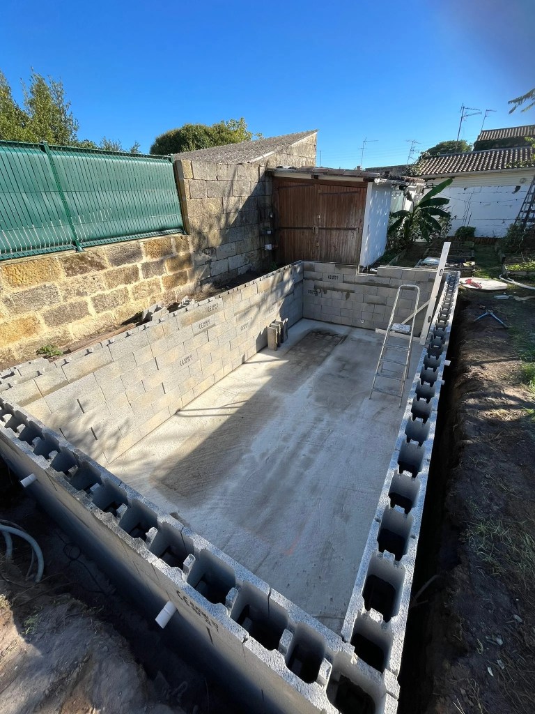 Construction d’une piscine 10m² avec banquette et lame d’eau à Saint Brès (34)
