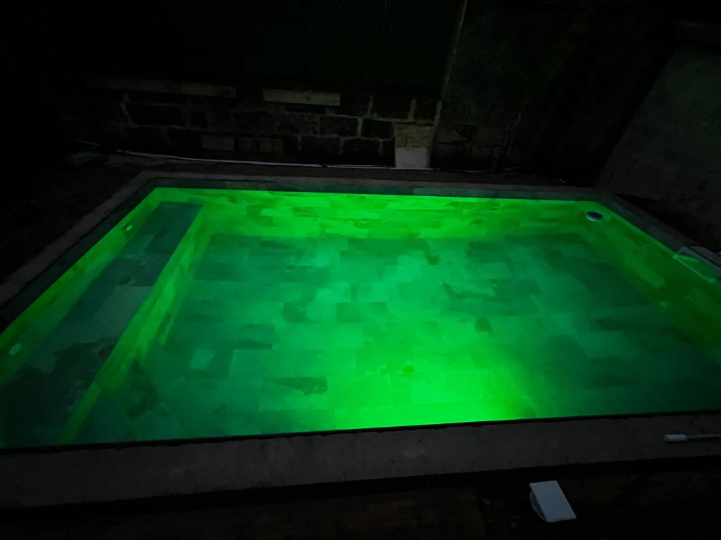 Réalisation d’une piscine sur mesure de 6×3 mètres (profondeur 1,40m) habillée d’un carrelage effet Bali Green 30×60 pour un style exotique et élégant. Ce revêtement unique apporte une couleur naturelle et un charme tropical à votre espace extérieur. Parfait pour les jardins modernes ou contemporains, cette piscine combine esthétique et durabilité, offrant un lieu de détente idéal à domicile.